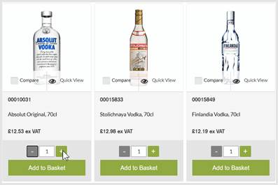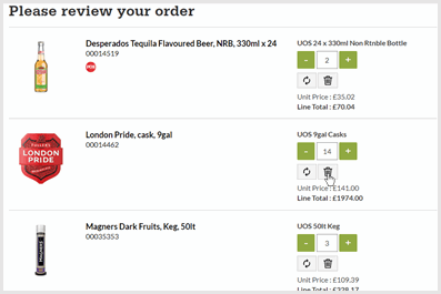 - Change quantities by using the buttons or by entering a number and clicking the refresh icon