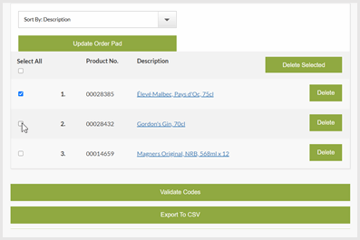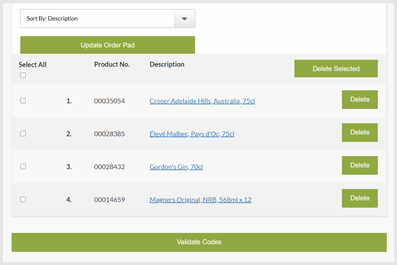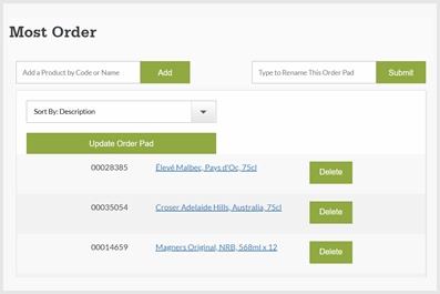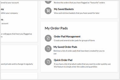 - My order pads - Create and amend your saved pads