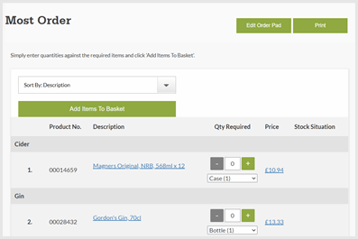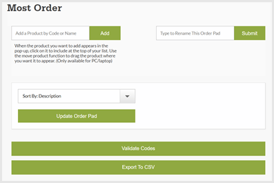- Quick Order Pad - Easy ordering using our product codes