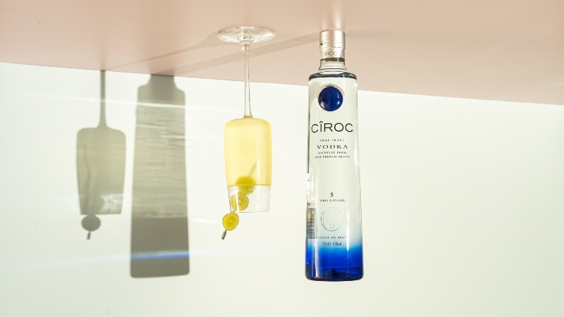 Lightly shake Ciroc Blue Dot and elderflower cordial together. Fine strain into your glass and top with your choice of sparkling wine, pouring over the back of a spoon or down the length of a bar spoon. Garnish with 3 frozen grapes.