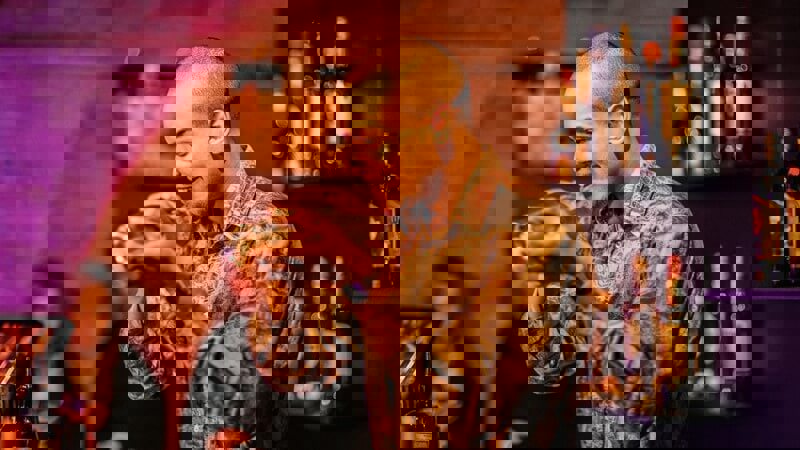 The final wildcard contestant, Stevey Arroyo, was representing Salt Dog Slim’s in Liverpool. His cocktail was born out of finding the perfect drink for an indecisive guest. It must have been the perfect drink as Amelia, the customer the drink is named after, was in the crowd cheering Stevey along! The drink brings together Monkey 47 gin, Cointreau, lemon, sugar syrup, grapefruit bitters and champagne for a crisp freshness that we all need on hot days.